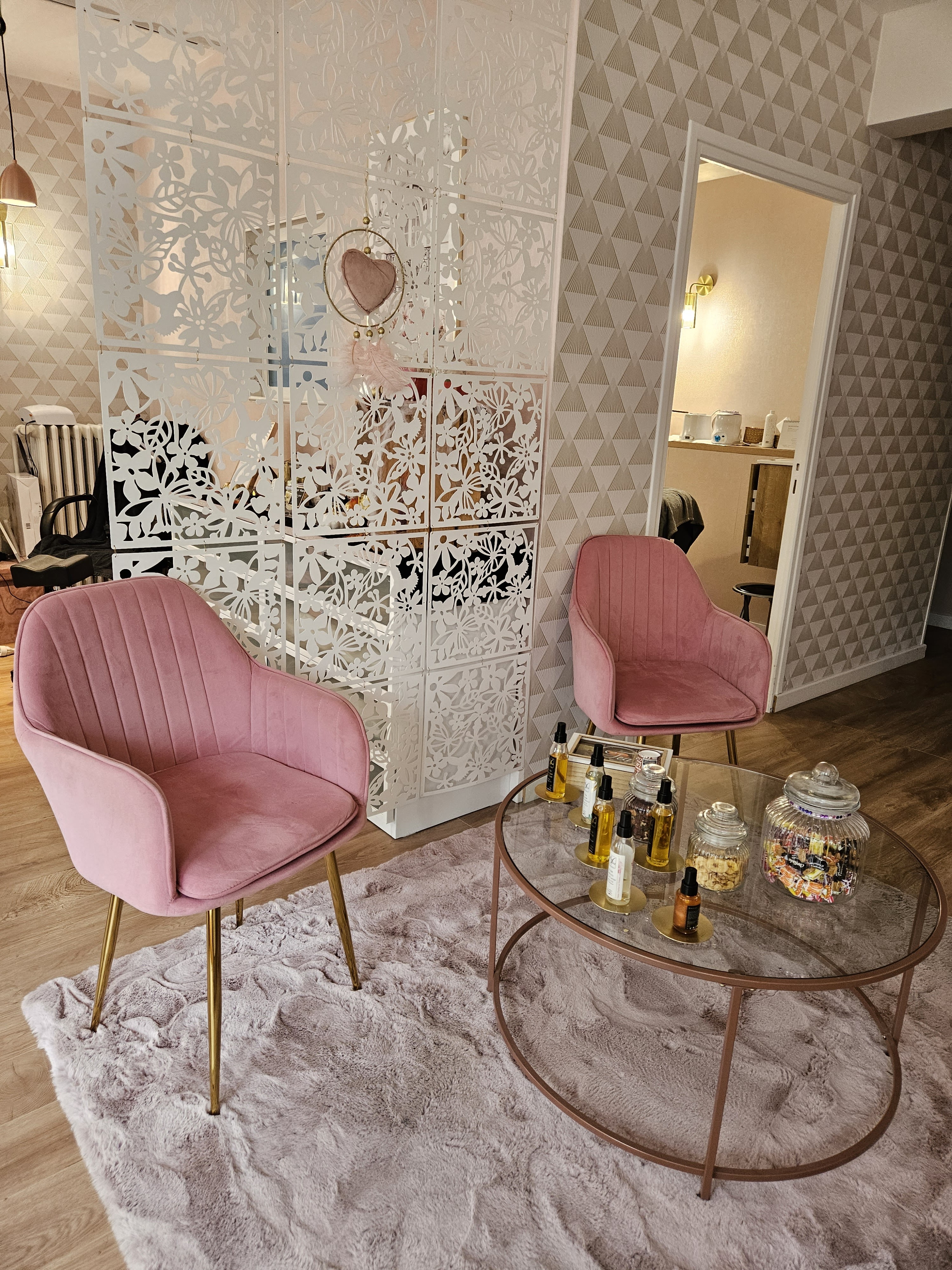 SUPER ACCUEIL SALON TRES COCOONING ON S'Y SENT TRES BIEN PRESTATION AU TOP JE RECOMMANDE CE NOUVEAU SALON QUI VIENT D'OURVIR
