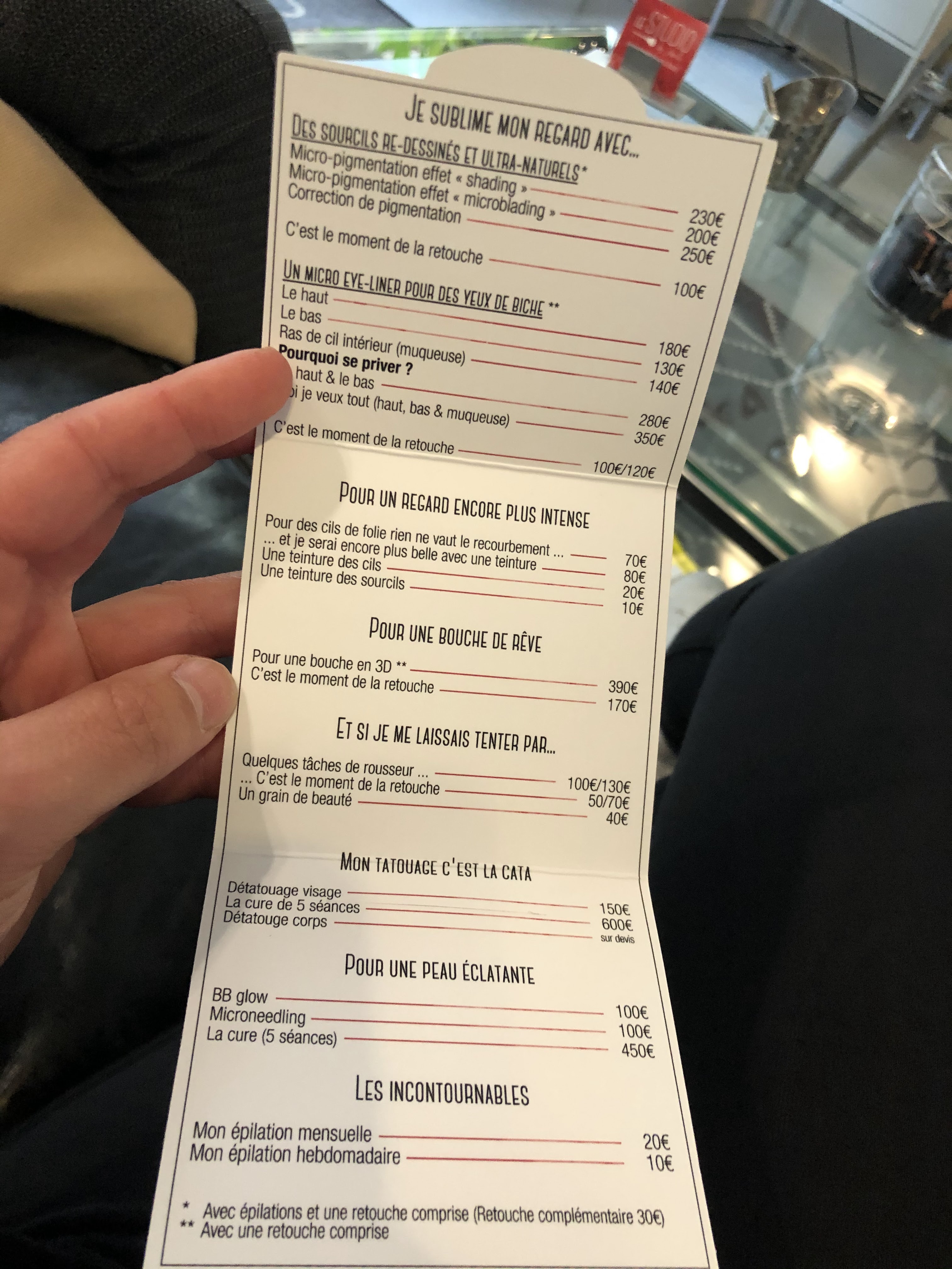 Très bonnes prestations et jusqu'à aujourd'hui rien à dire , je faisais toujours mon épilation sourcils au studio, par contre c'est dommage d'encourager les clientes fidèles à aller voir ailleurs en ne prenant plus de rendez vous par téléphone et en leur demandant de passer sur place pour prendre rendez vous...sinon allez acheter un forfait à 100 euros...no comment!