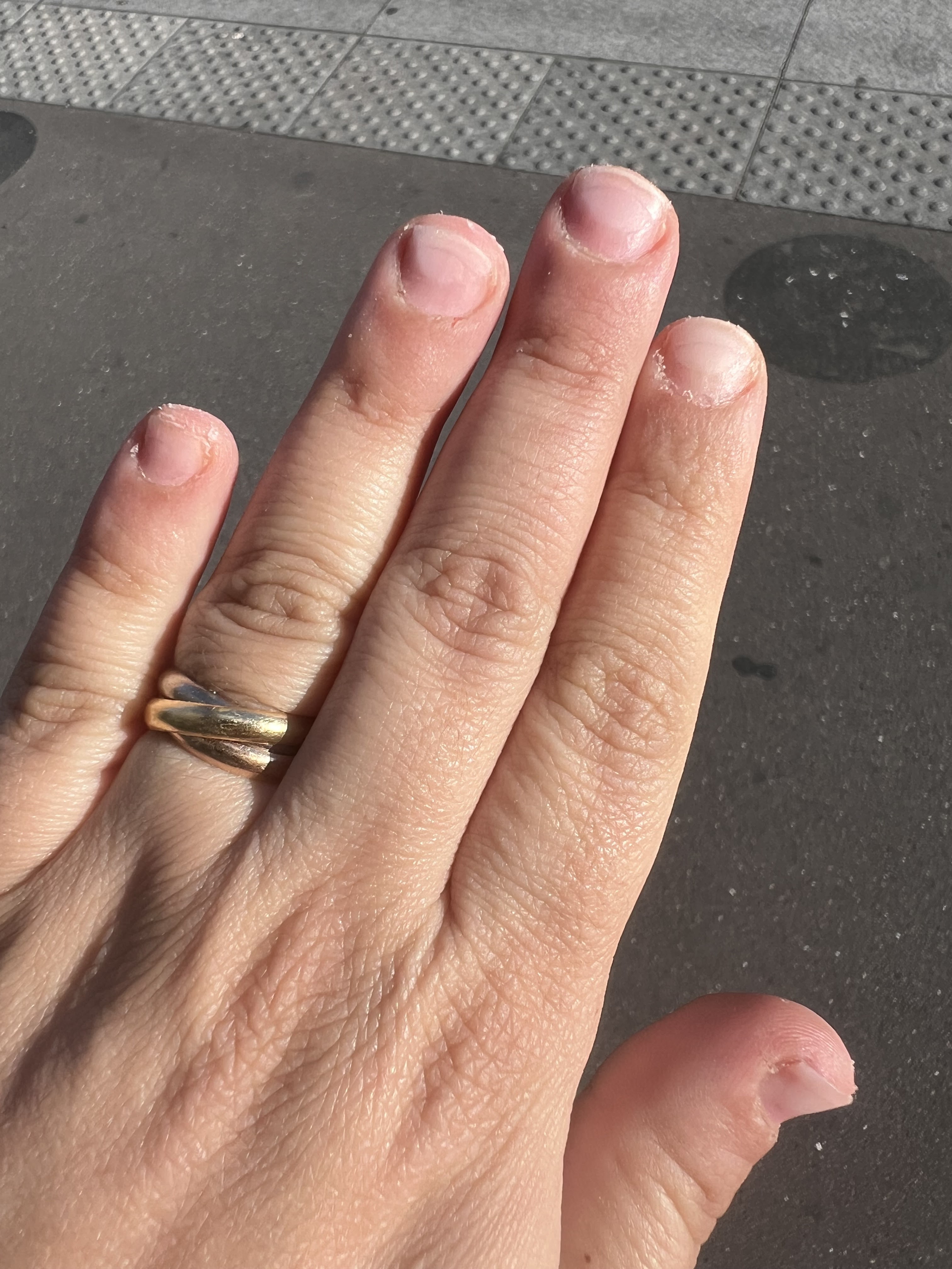 Une pose de vernis permanent pas au top du tout vernis qui coule sur les côtés vernis qui dépasse partout