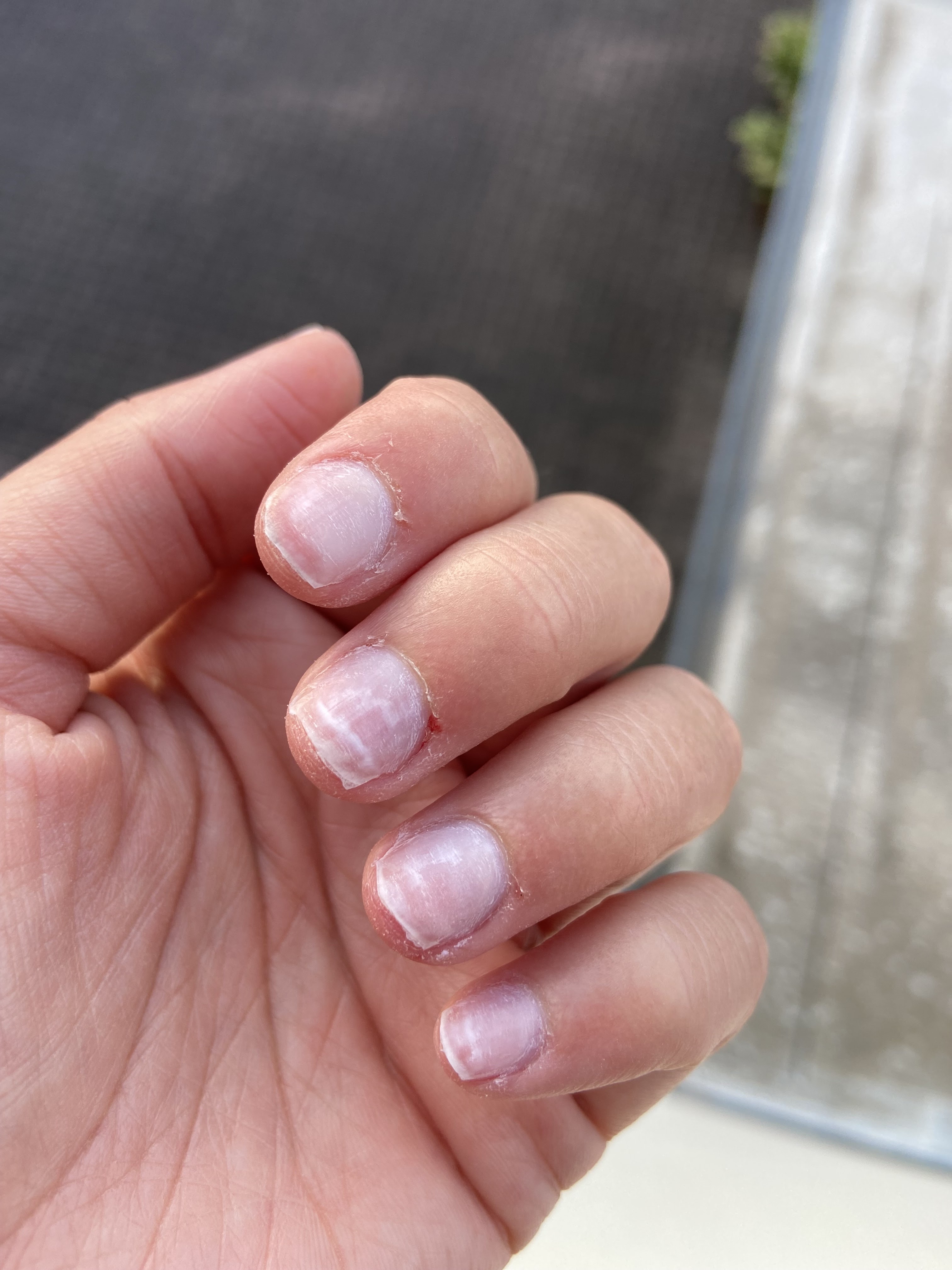 J’ai pris rdv pour une simple dépose, je ressors avec les ongles complètement abimés, brûlés et des plaques rouges sur chaque ongle….