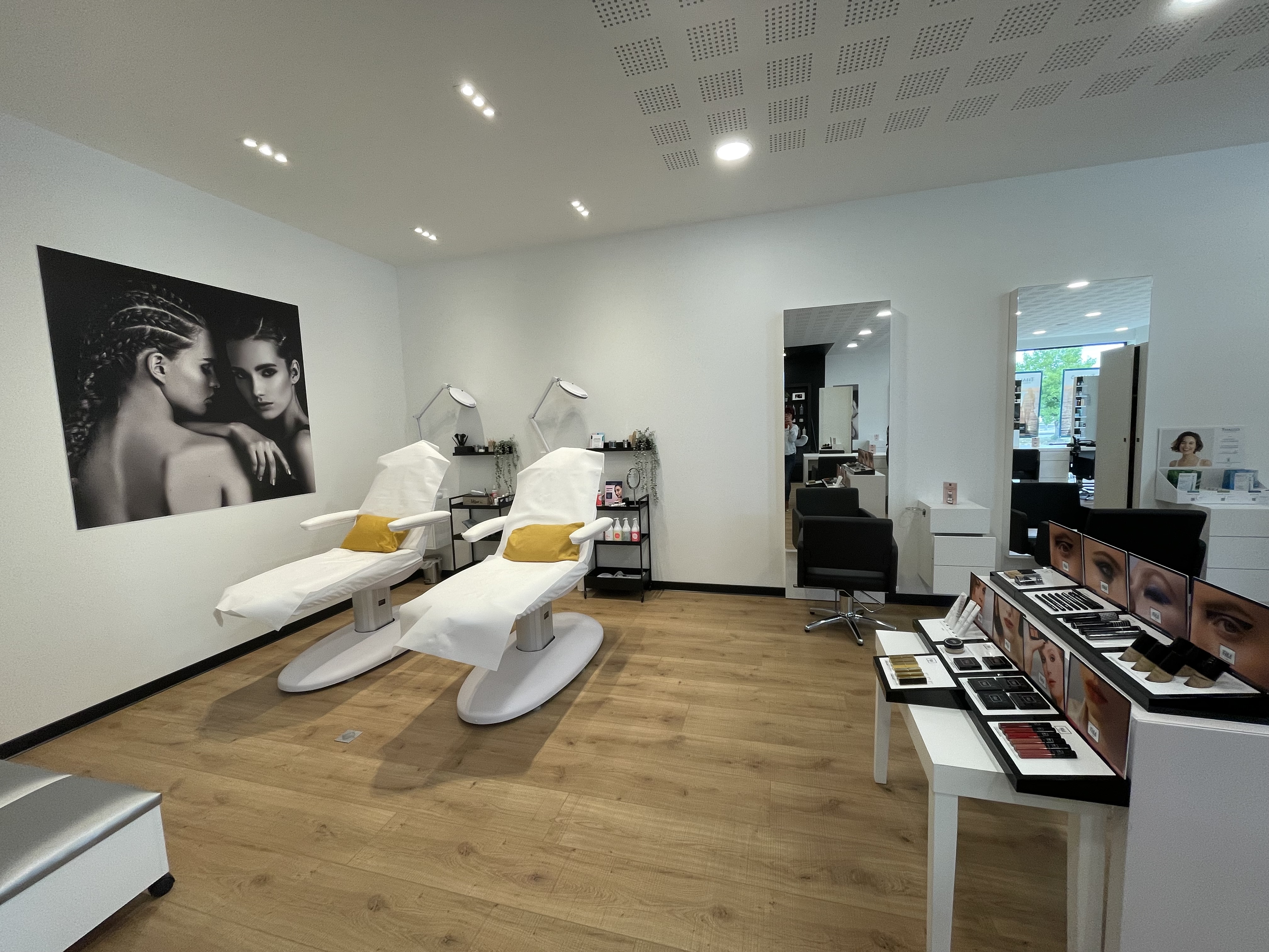 Spacieux. Réunit plusieurs services (coiffeur - manucure..). Accès facile. Stationnement tout près. Et très bonne coiffeuse.