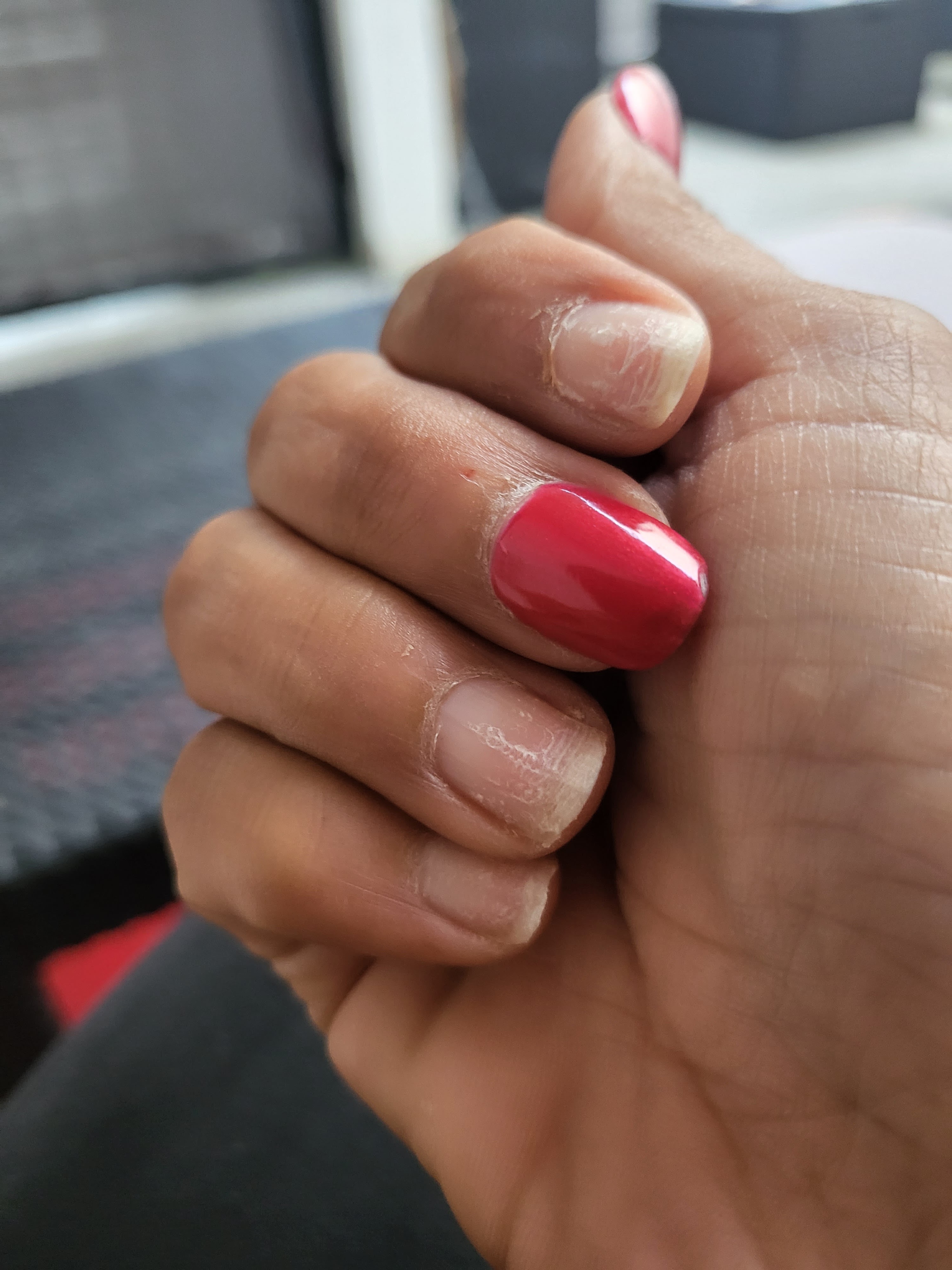 Le travail très mal fait pas sérieux et pas de garantie et on paye cher Pour les ongles