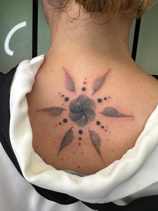 1er tatouage et j'ai choisi sans hésiter Annabelle et sa technique Dotwork. Le résultat est sublime. Aucune douleur. Travail de minutie et fait avec un grand cœur. Je connais Annabelle depuis + 2 ans qui me fait des ongles impeccables. Je lui fais 100% confiance et j'ai eu raison de lui confier mon dos. Allez y sans hésiter. En + elle est pétillante, souriante, on se sent comme à la maison. Merci Annabelle, à tres vite.ophelie